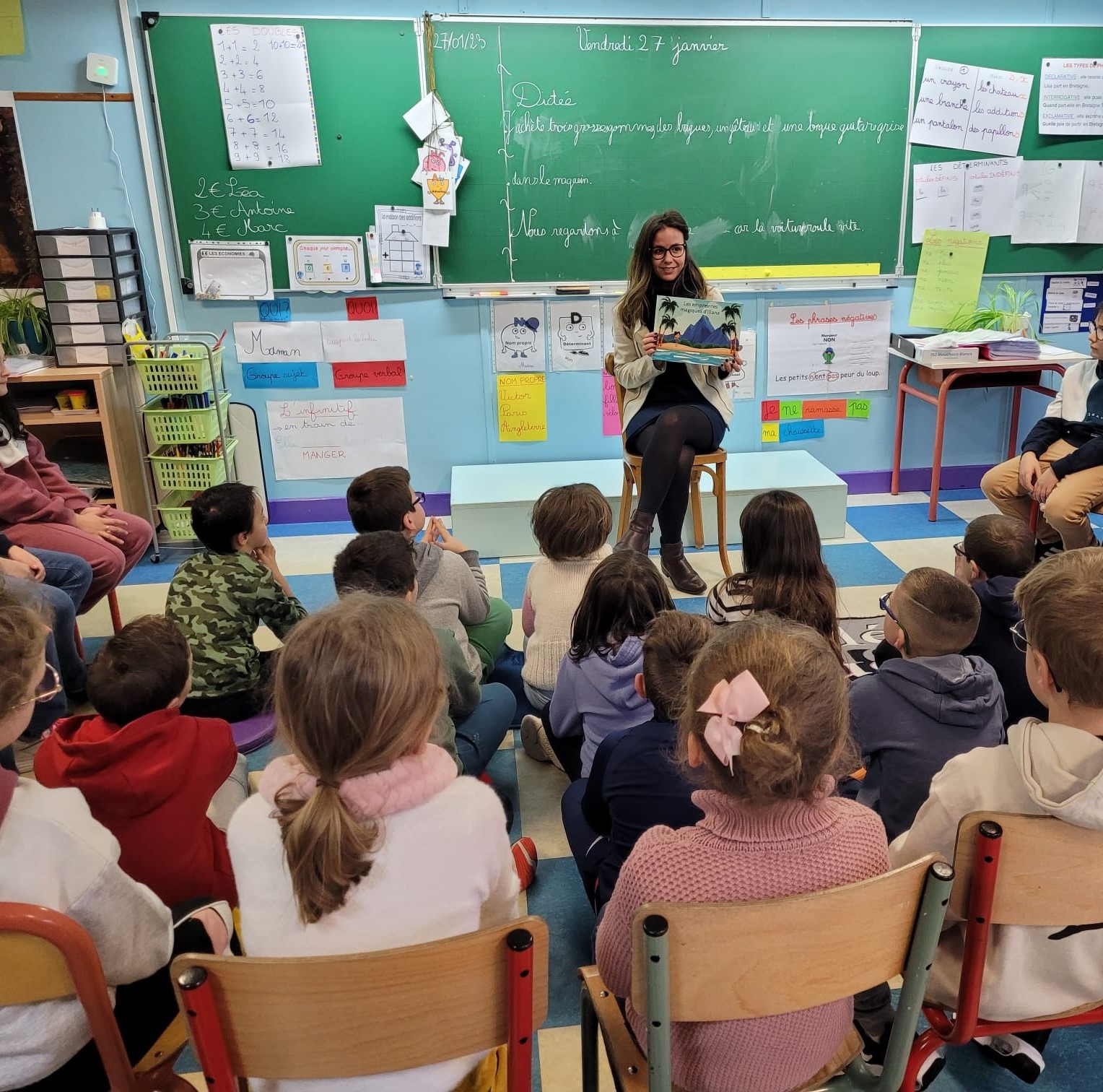 Je me déplace dans vos classes pour partager l'histoire de mes livres, leur création, l'élaboration d'un schéma narratif, ainsi que tout le chemin que doit parcourir un livre pour arriver entre nos mains. Le projet s'élabore en amont avec le professeur, et je prends le temps de répondre à toutes les questions des enfants.